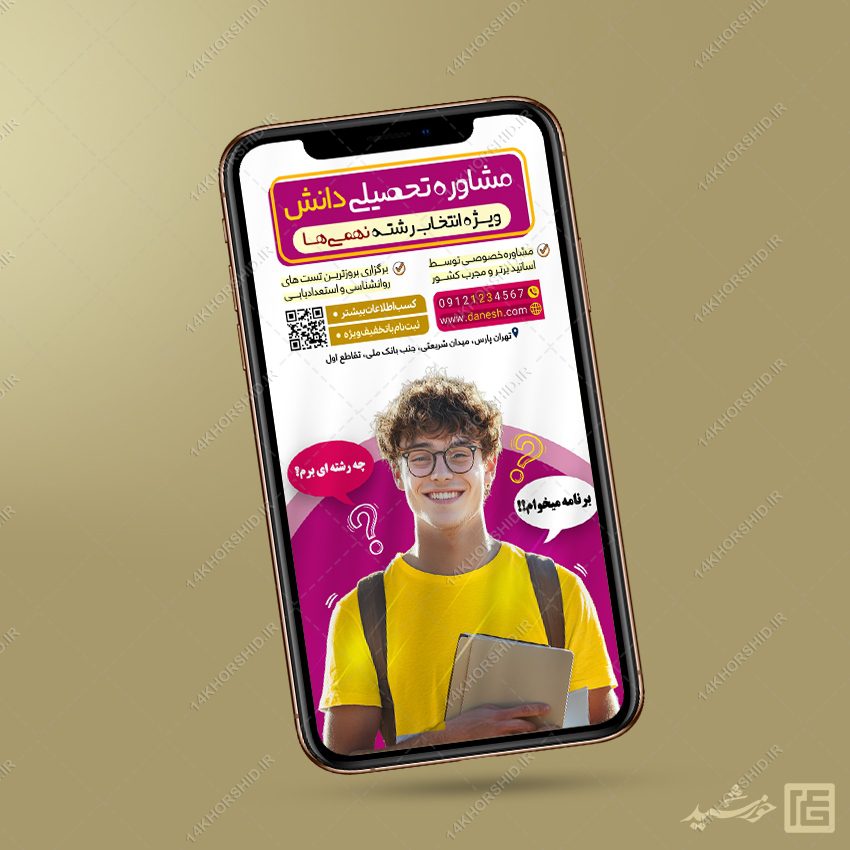 از طرح استوری ثبت نام کلاس مشاوره درسی یا استوری مشاوره تخصیلی میتوانید برای تبلیغات یا انتشار استوری و پست مخصوص درس و ثبت نام کلاس های تقویتی و درسی استفاده نمایید. این طرح کاملا لایه باز هست و میتوانید مطالب و تصاویر خودتون جایگزین کنید.