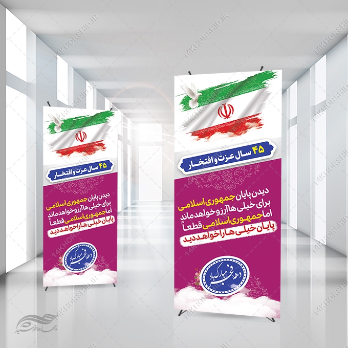 بنر استندی لایه باز شعار دهه فجر و 22 بهمن