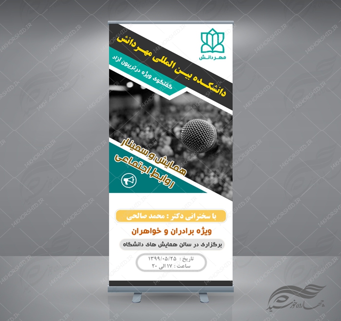 در این پست برای شما عزیزان بنر استندی لایه باز همایش و سمینار یازده psd منتشر کردیم، فایل لایه باز بوده ومی توانید در نرم افزار قدرتمند فتوشاپ به دلخواه در تمامی قسمت ها تغییرات ایجاد نمایید.