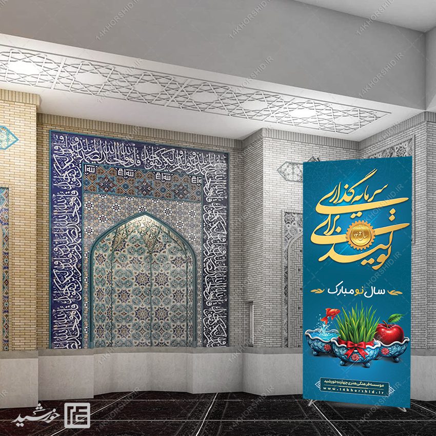 بنر استند شعار سال 1404 سرمایه گذاری برای تولید