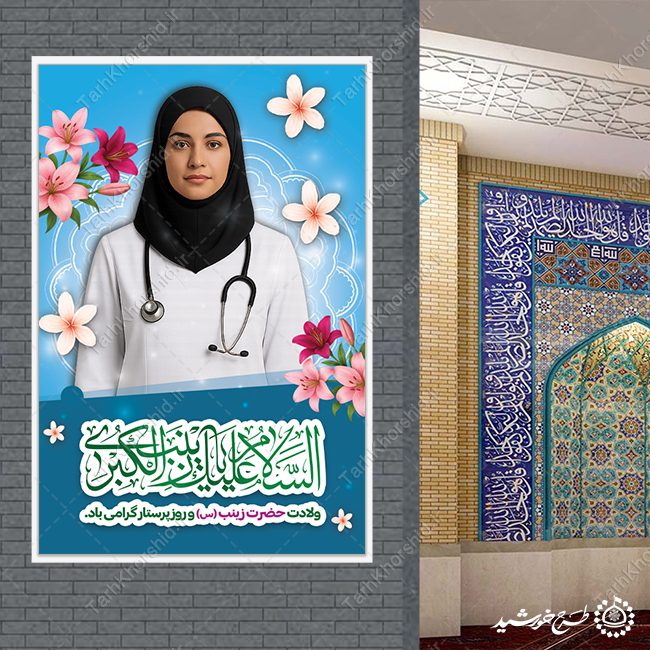 بنر لایه باز تبریک میلاد حضرت زینب و روز پرستار