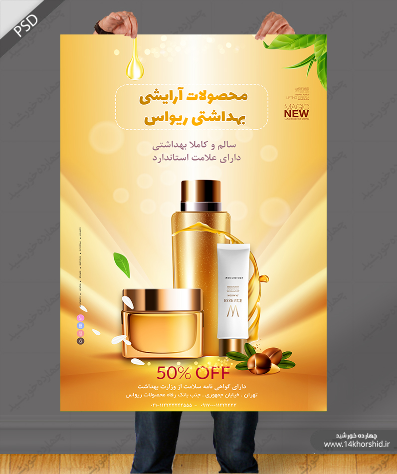 در این پست برای شما عزیزان بنر و پوستر لایه باز محصولات آرایشی بهداشتی طلا psd قرار دادیم.طراحی این فایل بسیار با کیفیت می باشد و جهت چاپ روی انواع برگه A3/A4/A5 و بنر مناسب است.