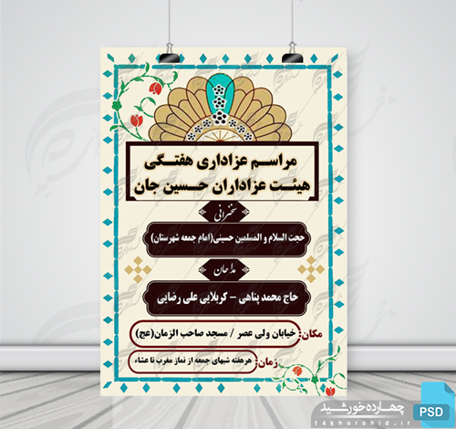 بنر و پوستر لایه باز مراسمات هفتگی عزاداری ۱۱ psd