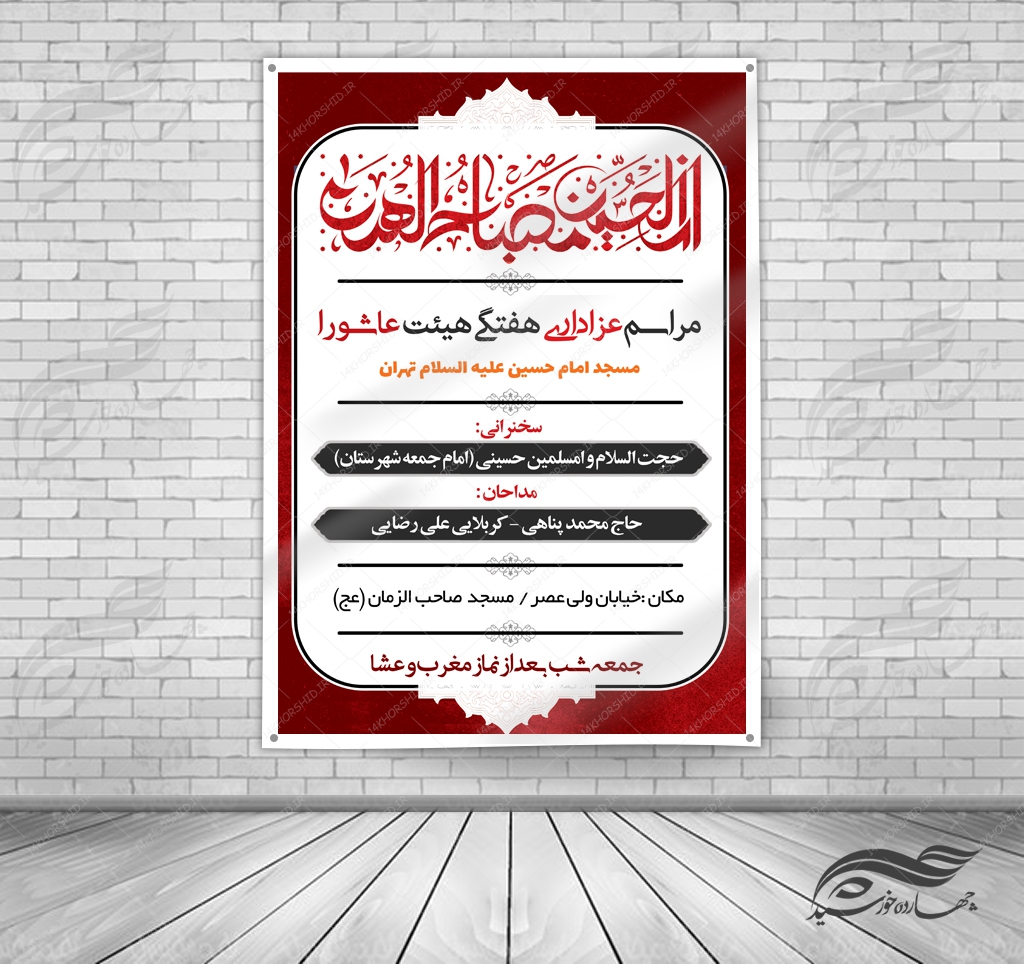 در این پست برای شما عزیزان بنر و پوستر لایه باز مراسمات هفتگی عزاداری ۷ psd منتشر کردیم. این فایل بسیار باکیفیت است و در سایز های A3-A4-A5 قابل چاپ می باشد.