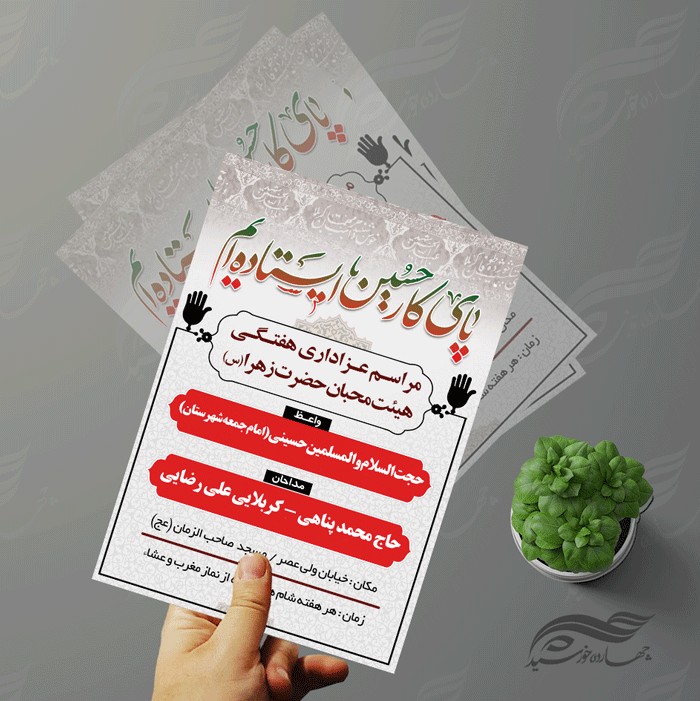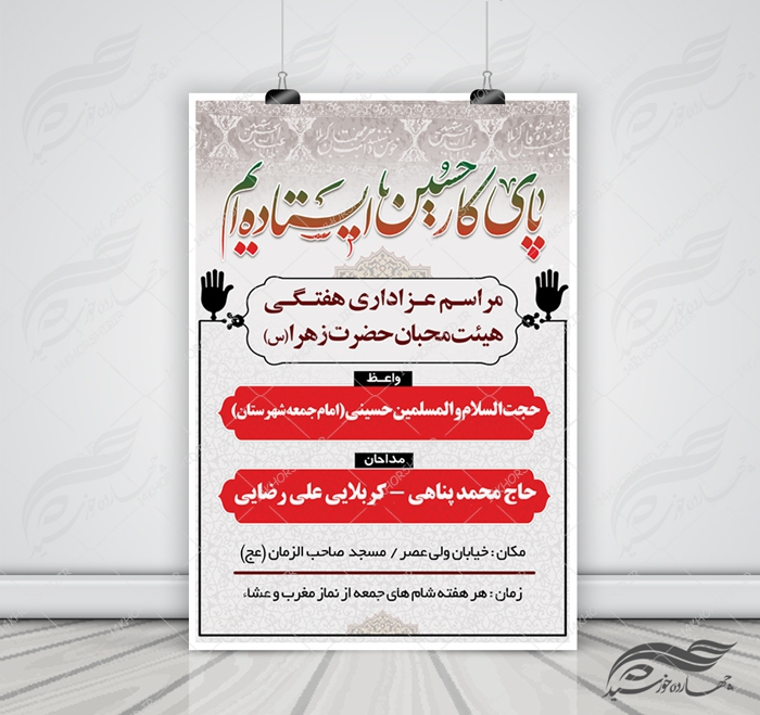 در این پست برای شما عزیزان بنر و پوستر لایه باز مراسمات هفتگی عزاداری  ۹ psd منتشر کردیم. این فایل بسیار باکیفیت است و در سایز های A3-A4-A5 قابل چاپ می باشد.