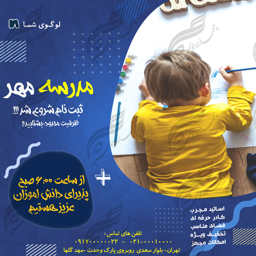 پست و استوری لایه باز ثبت نام پیش دبستانی psd