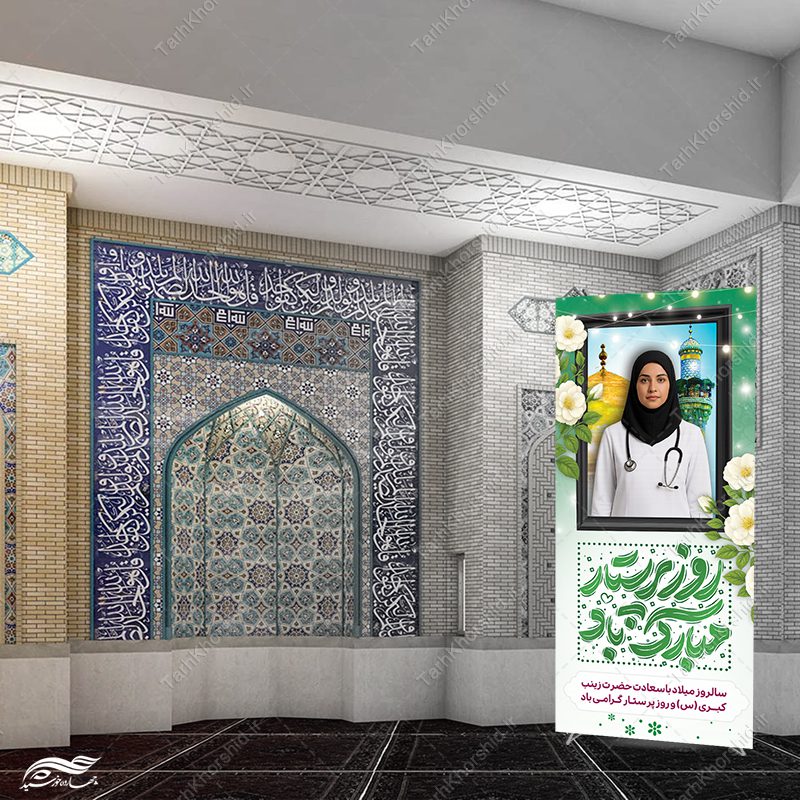 بنر گرافیکی برای روز پرستار و میلاد حضرت زینب (س) با تایپوگرافی لایه باز