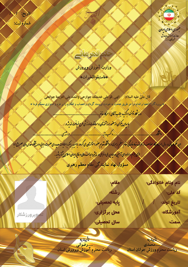در این پست برای شما عزیزان فایل لایه باز حکم قهرمانی با فرمت PSD قرار دادیم.طراحی این فایل بسیار با کیفیت می باشد وجهت چاپ روی انواع برگه مناسب است.