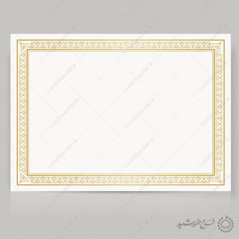 طرح کادر و حاشیه گواهی با زمینه طلایی روشن میتوانید . در انواع طراحی مدرک برای دوره های آموزشی استفاده نمایید یا برای صدور مدرک و گواهی برای موسسه و کلاس های فرهنگی یا دوره های اموزشی خودتون استفاده نمایید.