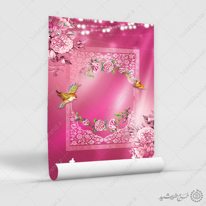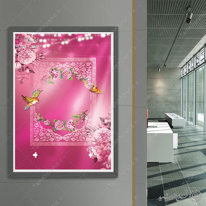 کاربرد پوستر خام با زمینه صورتی و حاشیه گلدار: