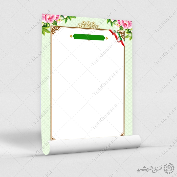 زمینه پوستر آماده با حاشیه اسلیمی و المان گل لایه باز