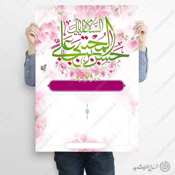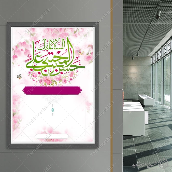 کاربرد پوستر خام با زمینه اسلیمی با طرح شکوفه امام حسن علیه السلام :