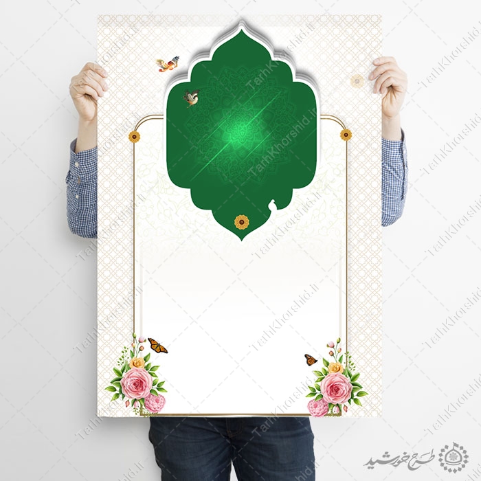پوستر خام و آماده دارای حاشیه اسلیمی و تذهیب برای تبلیغات مناسبت های مذهبی . میتوانید برای تبلیغات یا چاپ پوستر فرهنگی برای ادارات و موسسات و مراکز مذهبی استفاده نمایید. این طرح کاملا لایه باز هست و میتوانید مطالب و تصاویر خودتون جایگزین کنید.