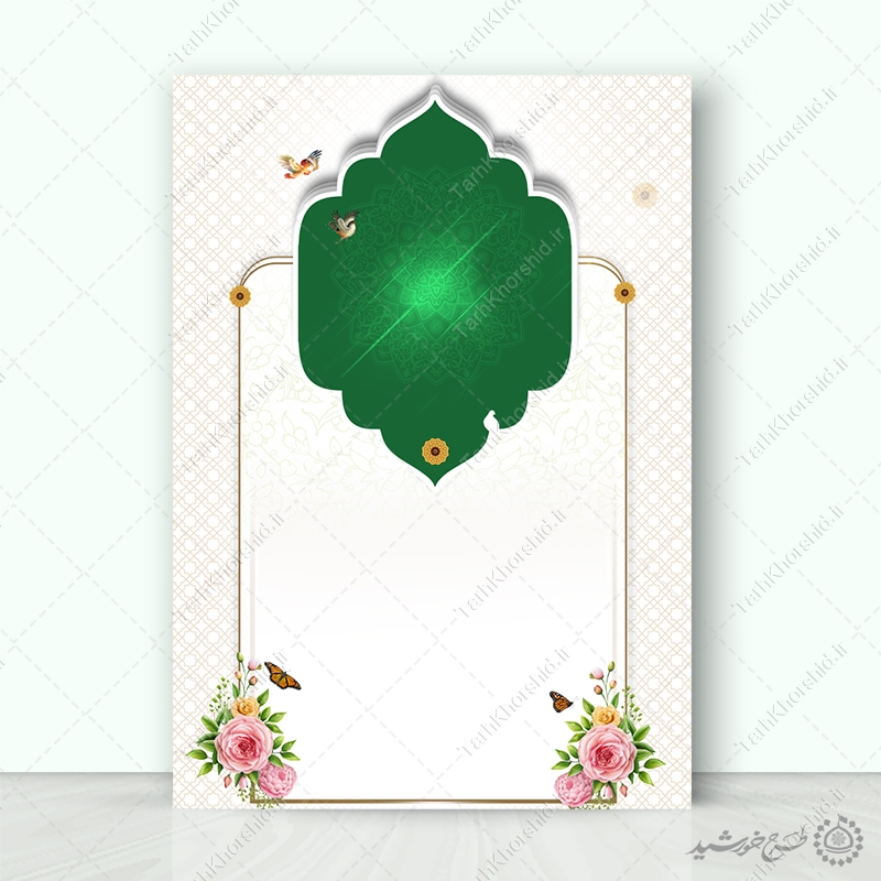 زمینه پوستر با حاشیه اسلیمی و المان گل و پرنده لایه باز