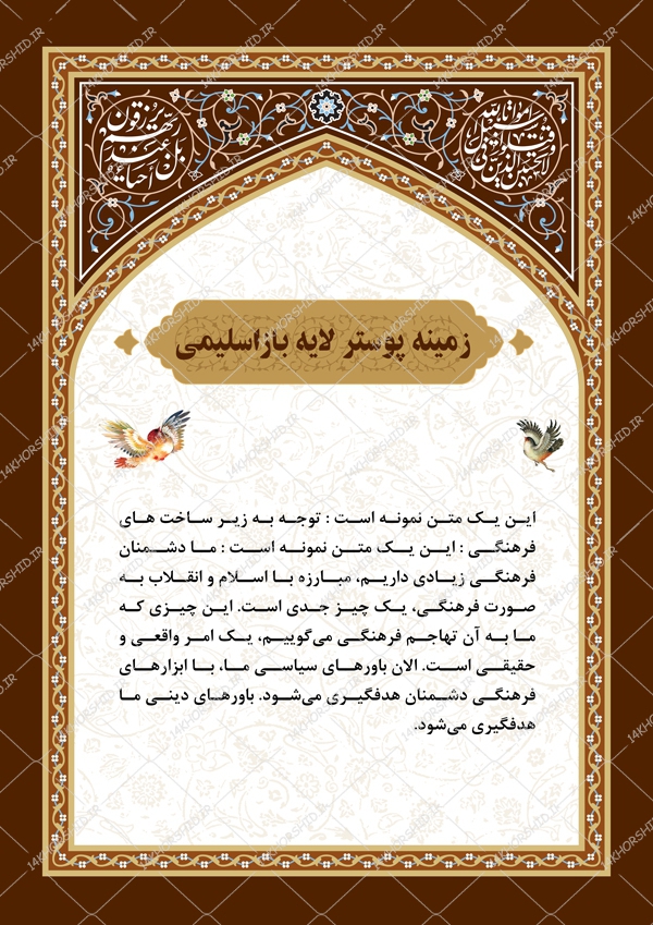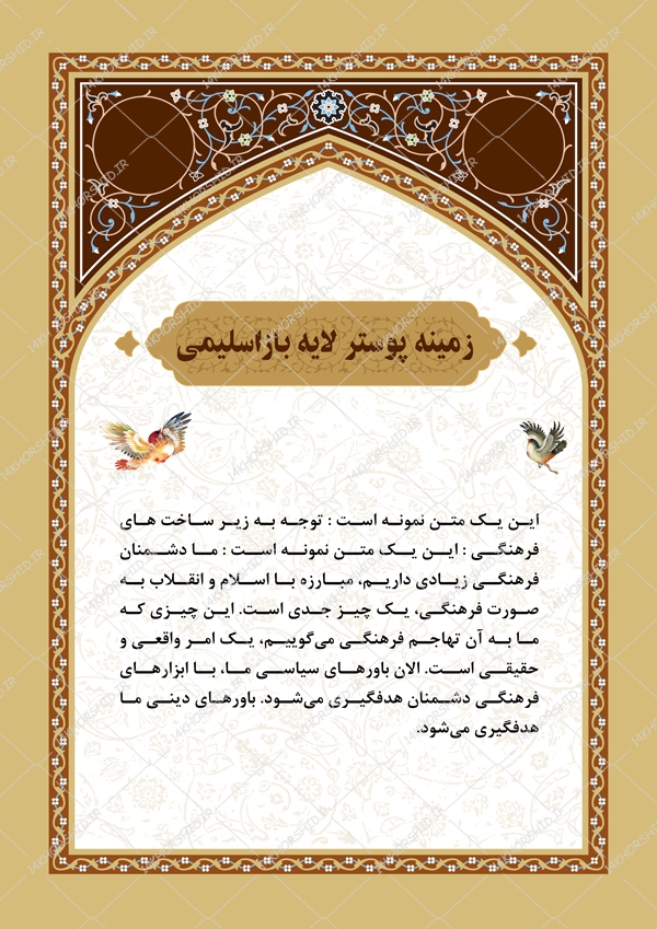 در این پست برای شما زمینه پوستر و بنر اسلیمی محرابی لایه باز ۱۶۴ psd قرار دادیم.طراحی این فایل بسیار با کیفیت می باشد وجهت چاپ روی انواع برگه A4/A2 /A3و بنر مجازی مناسب است.