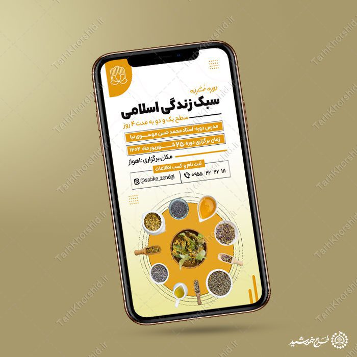 از این طرح استوری اطلاعیه با موضوع تبلیغات دوره آموزشی سبک زندگی . میتوانید برای تبلیغات برگزاری کلاس های طب اسلامی و سنتی استفاده نمایید. این طرح کاملا لایه باز هست و میتوانید مطالب و تصاویر خودتون جایگزین کنید.