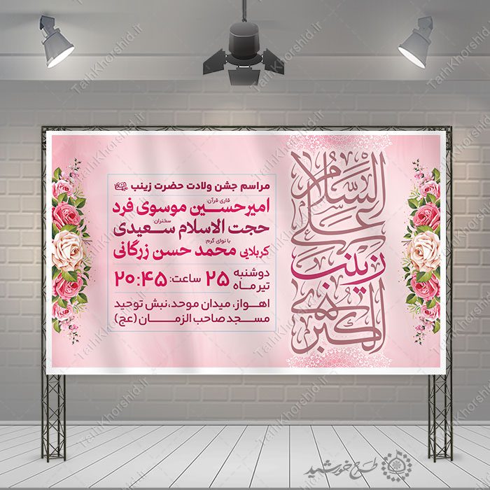 طرح بنر آماده مراسم جشن ولادت حضرت زینب (س) لایه باز