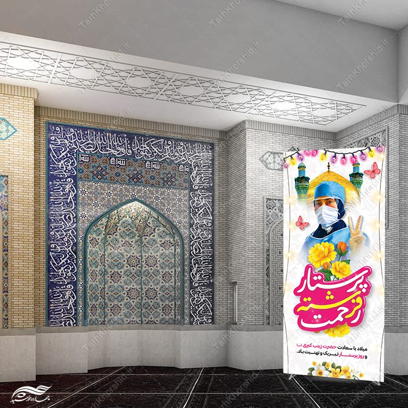 از طرح بنر استندی ویژه روز پرستار مناسب برای جشن ولادت حضرت زینب(س) . میتوانید برای تبلیغات اطلاع رسانی جشن و مولودی استفاده نمایید. این طرح کاملا لایه باز هست و میتوانید مطالب و تصاویر خودتون جایگزین کنید.