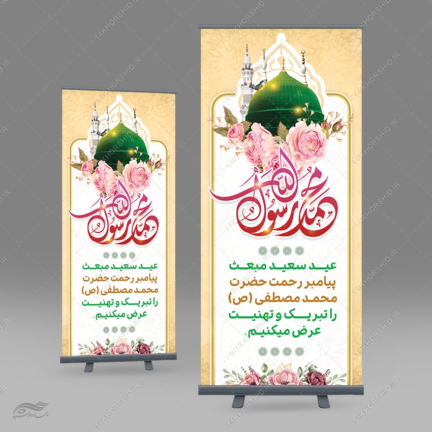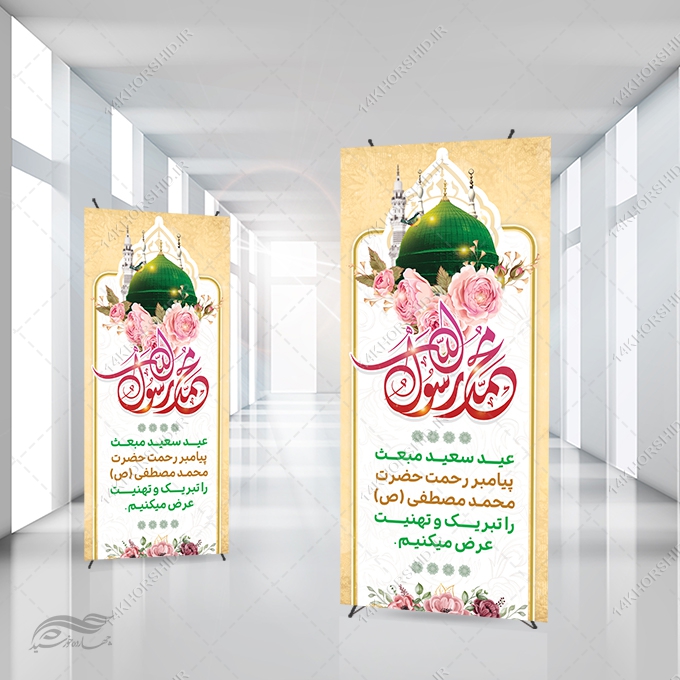 طرح بنر استندی لایه باز تبریک عید مبعث