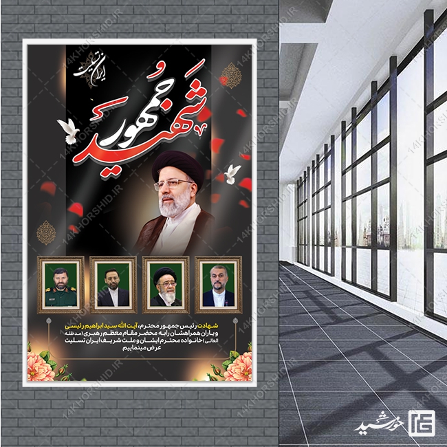 در این پست برای شما طرح بنر لایه باز جایگاه تسلیت شهادت سید ابراهیم رئیسی psd قرار دادیم. و جهت چاپ و استفاده در انواع طراحی مناسب است.