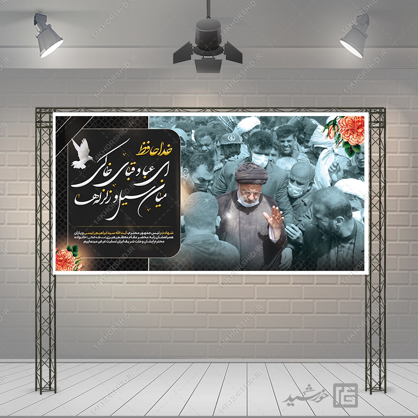 در این پست برای شما طرح بنر لایه باز جایگاه تسلیت شهادت سید ابراهیم رئیسی psd قرار دادیم. و جهت چاپ و استفاده در انواع طراحی مناسب است.