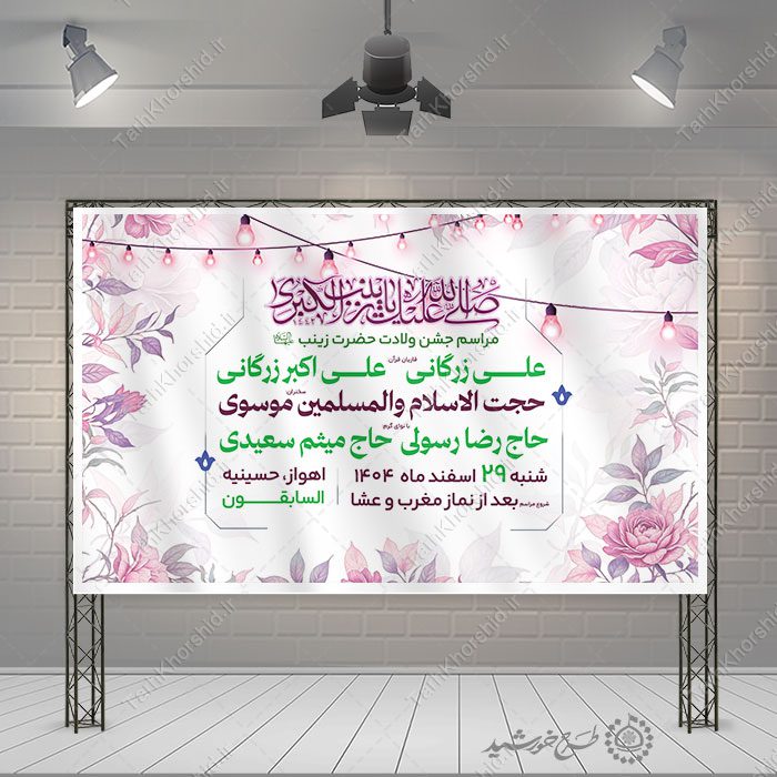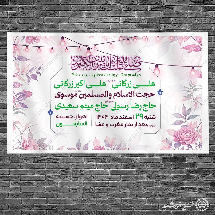 طرح بنر لایه باز اطلاعیه مراسم جشن ولادت حضرت زینب (س)