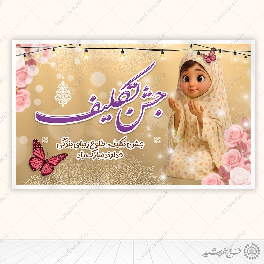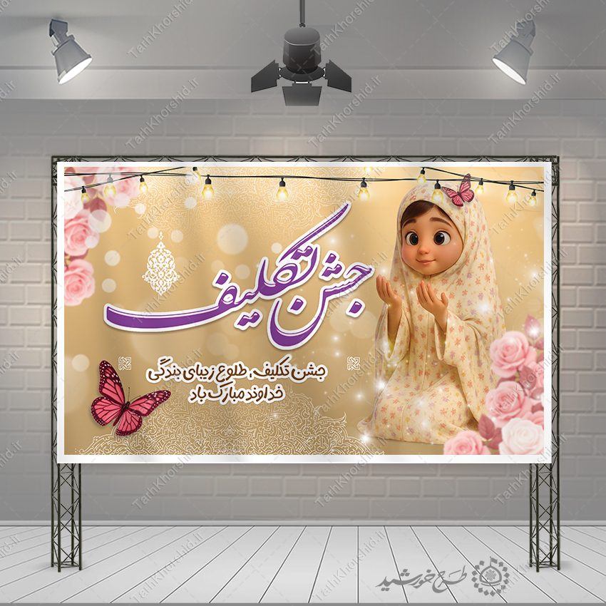 کاربرد طرح بنر جشن تکلیف با طراحی مذهبی مدارس لایه باز :