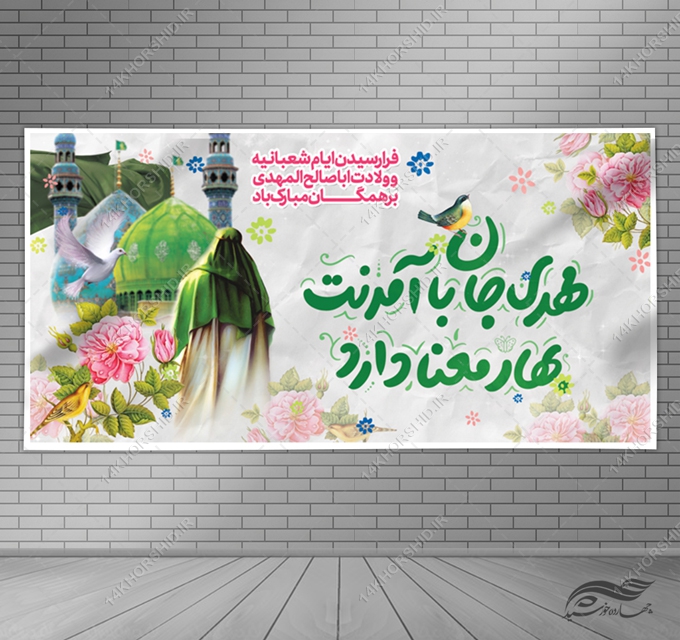 در این پست برای شما فایل بنر لایه باز جشن میلاد امام زمان عج قرار دادیم.طراحی این فایل بسیار با کیفیت می باشد و جهت چاپ روی انواع بنر و فلکس مناسب است.
