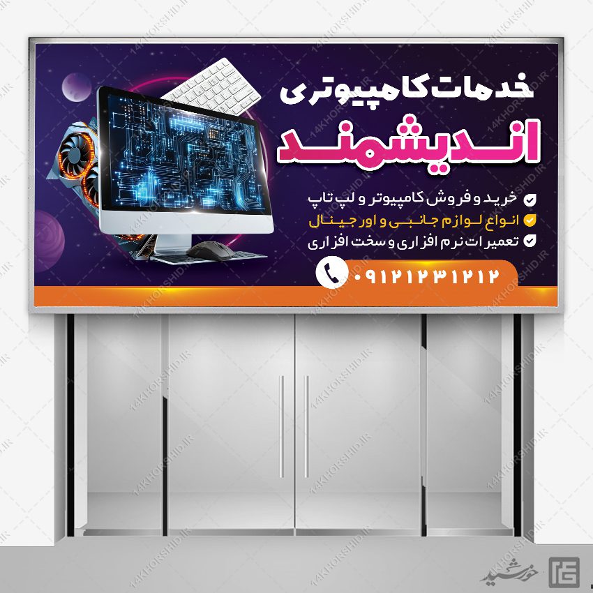 طرح تابلو و بنر لایه باز خدمات کامپیوتری