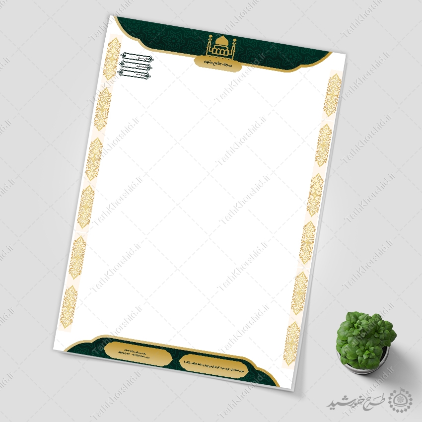 - طرح های مرتبط با سربرگ مناسب مکاتبات رسمی مراکز فرهنگی و مساجد با قاب اسلیمی را میتوانید در قسمت آرشیو مشاهده نمایید. سربرگ اداری لایه باز