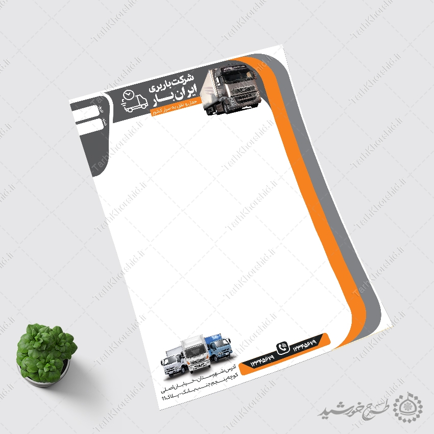 از این طرح سربرگ برای مکاتبات و بارنامه باربری میتوانید. برای تبلیغات یا چاپ طرح های مرتبط با باربری و حمل و نقل استفاده نمایید. این طرح کاملا لایه باز هست و میتوانید مطالب و تصاویر خودتون جایگزین کنید.