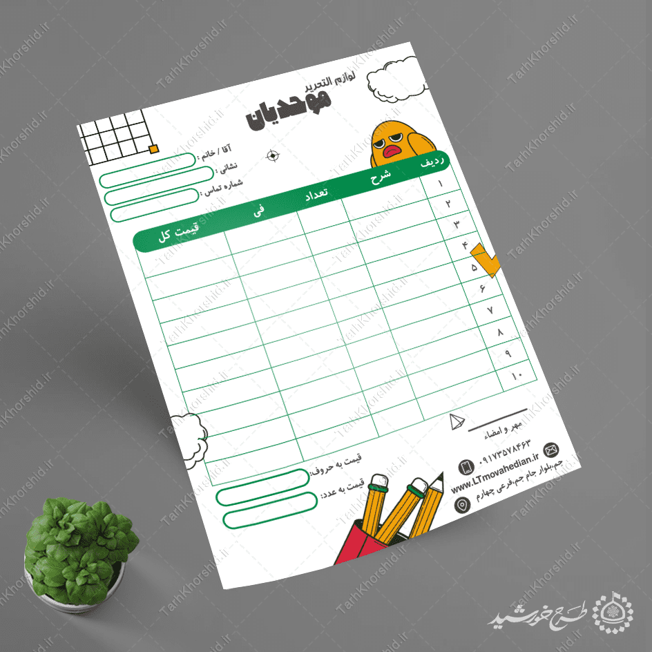 کاربرد طرح فاکتور فروش لوازم تحریر مدرسه لایه باز :