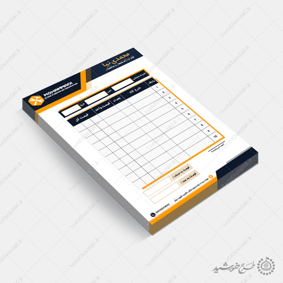 فاکتور لایه باز ابزاری برای فروش کالا . میتوانید برای تبلیغات یا چاپ برای شرکت ها و فروشگاه ها استفاده نمایید. این طرح کاملا لایه باز هست و میتوانید مطالب و تصاویر خودتون جایگزین کنید.