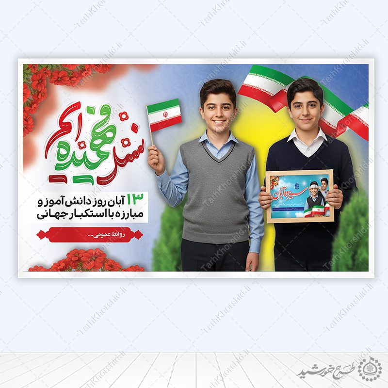 طرح لایه باز بنر اطلاعیه یوم الله سیزده آبان مناسب مدارس