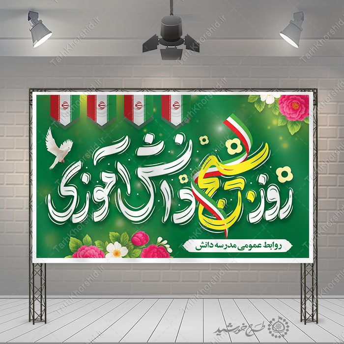 طرح بنر روز دانش آموزی مناسب برای مدارس و مراکز فرهنگی و بسیج دانش آموزی . میتوانید برای تبلیغات در مدارس و موسسات آموزشی و فرهنگی استفاده نمایید. این طرح کاملا لایه باز هست و میتوانید مطالب و تصاویر خودتون جایگزین کنید.
