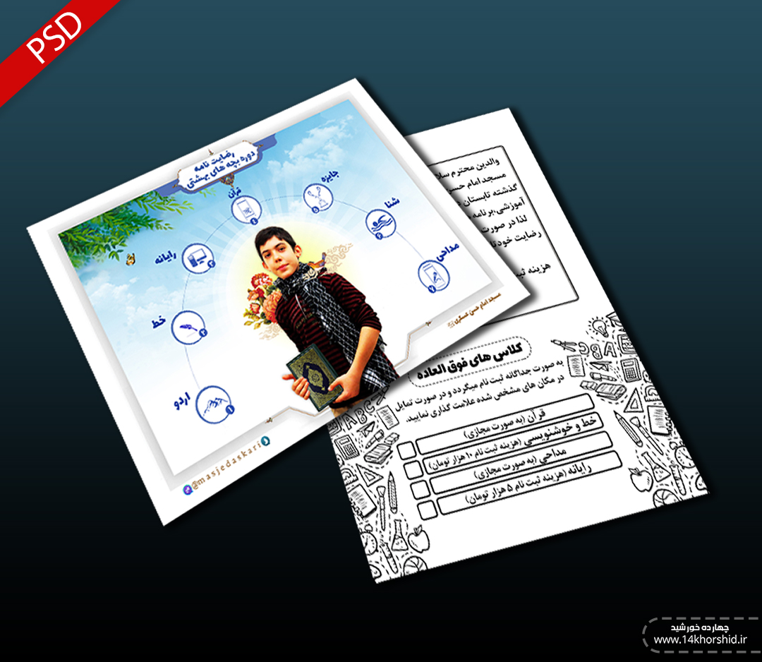 طرح لایه باز تراکت و رضایتنامه دوره های فرهنگی psd