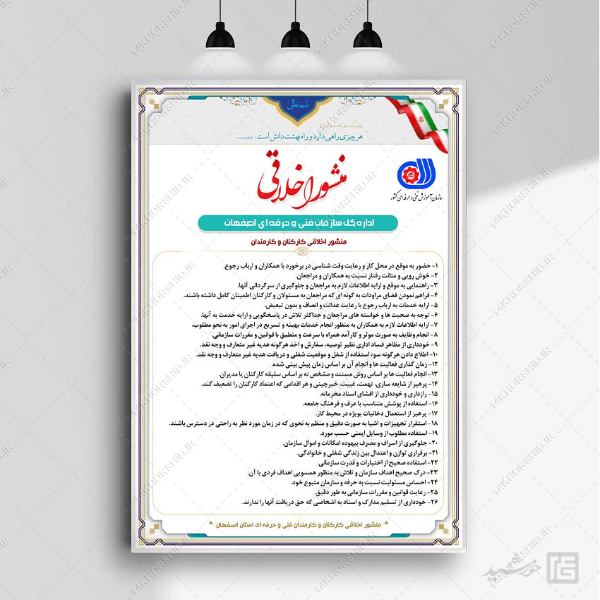 در این پست برای شما عزیزان طرح لایه باز منشور اخلاقی psd برای ادارات و سازمان ها قرار دادیم. وجهت چاپ روی انواع برگه A4/A3/A2 و یا بنر و فلکس مناسب است.