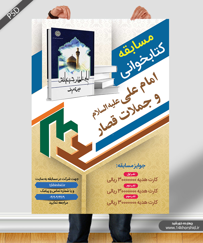 طرح لایه باز پوستر مسابقه کتابخوانی امام علی “ع”