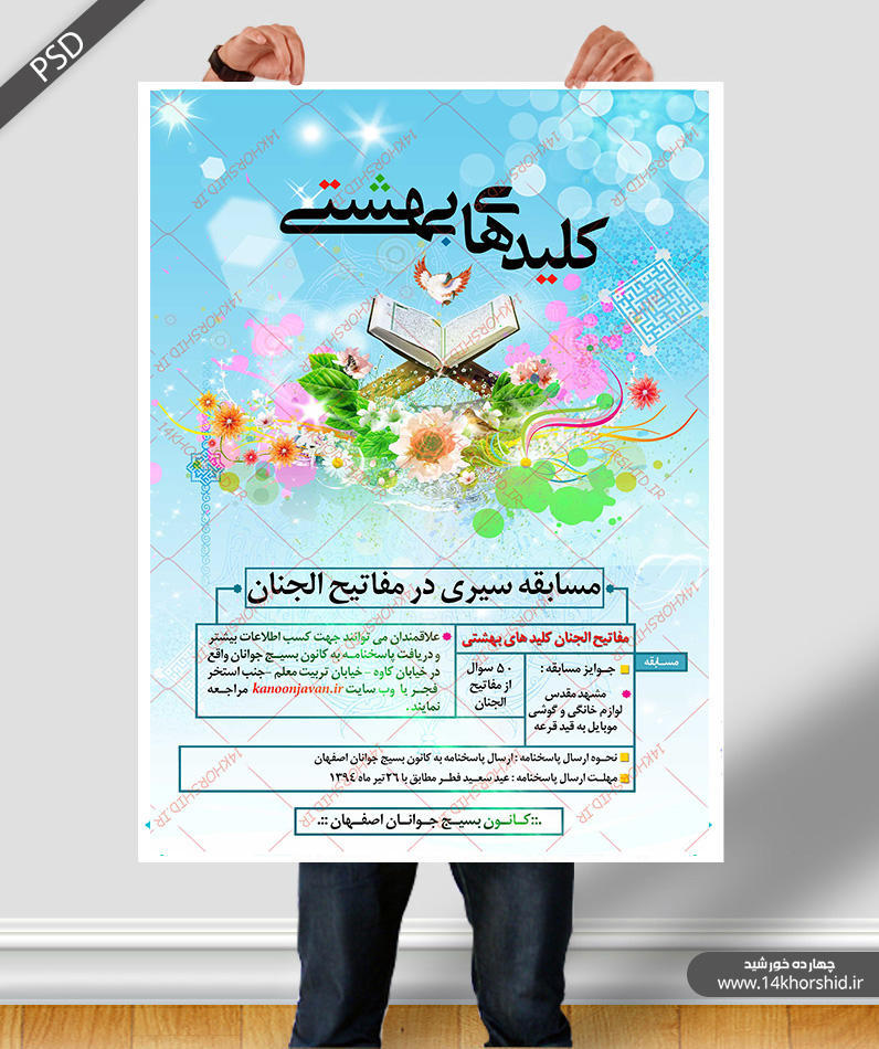 طرح لایه باز پوستر مسابقه کلیدهای بهشتی psd