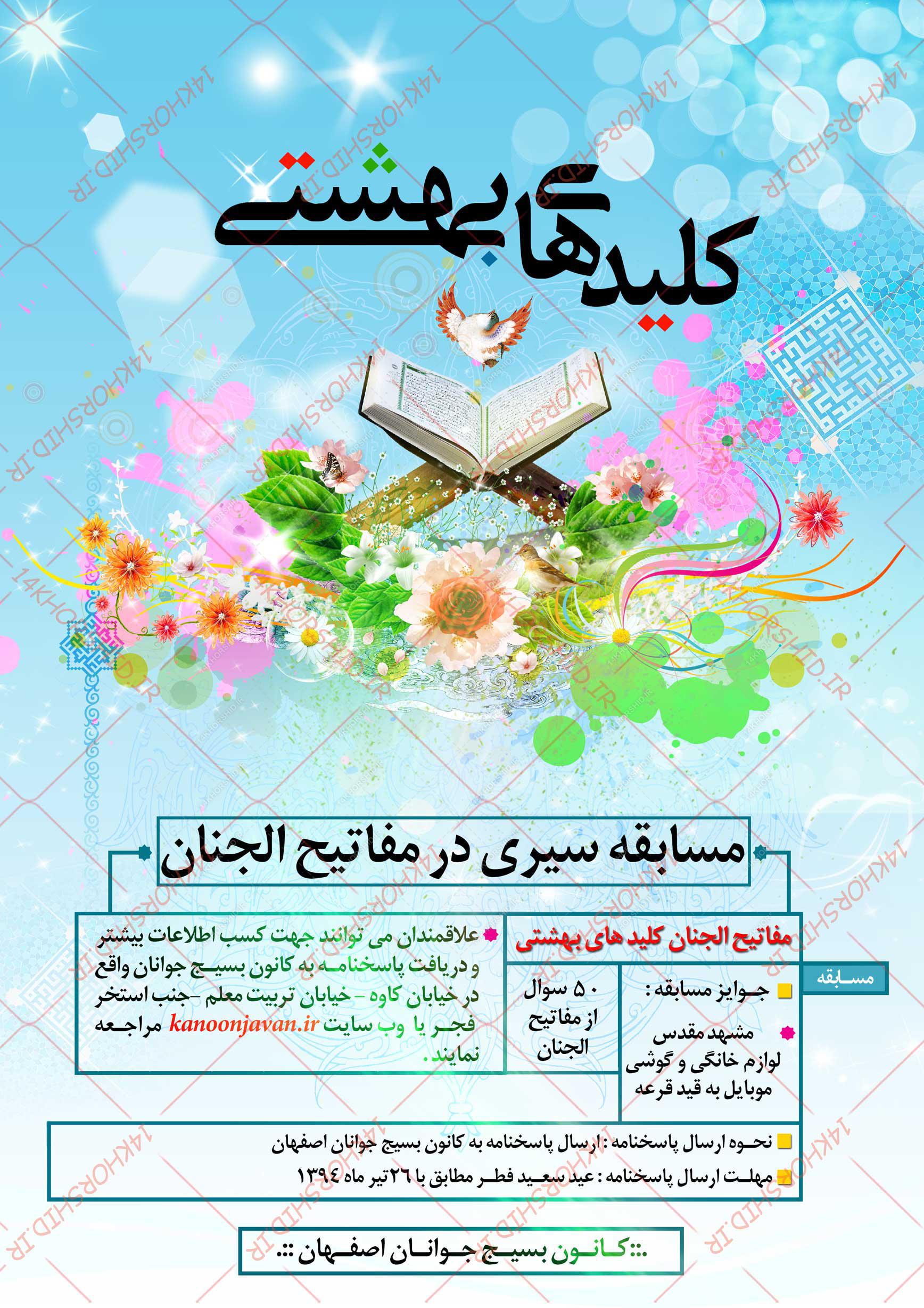 طرح لایه باز پوستر مسابقه کلیدهای بهشتی psd