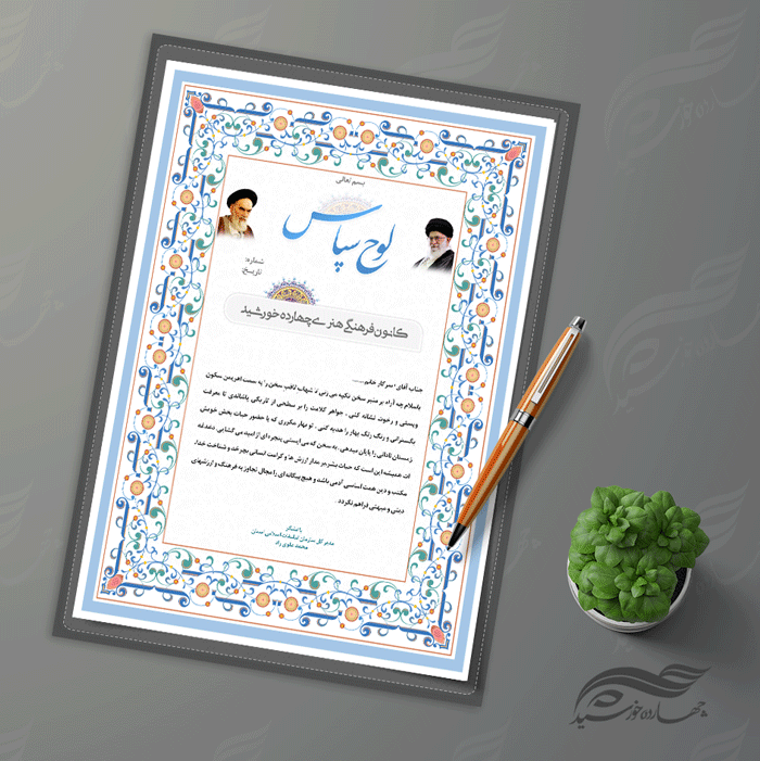 طرح لوح تقدیر و لوح سپاس لایه باز اسلیمی ۲۲ psd
