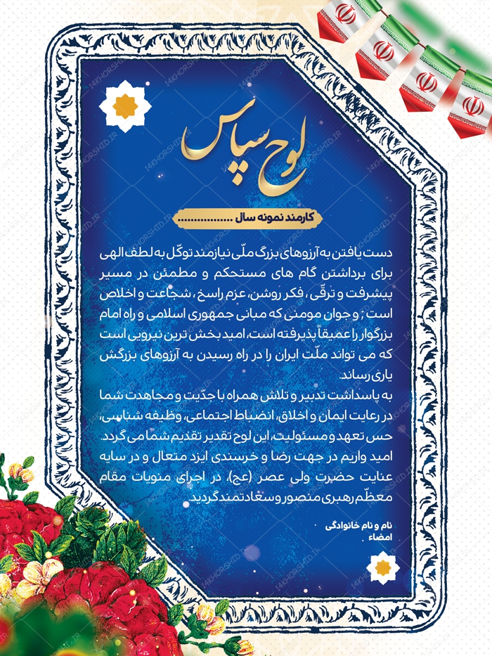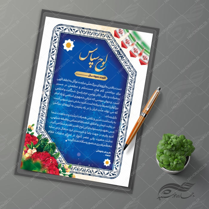 طرح لوح تقدیر و لوح سپاس لایه باز اسلیمی ۲۵ psd