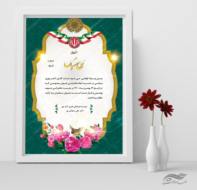 طرح لوح تقدیر و لوح سپاس لایه باز ۳۳ psd