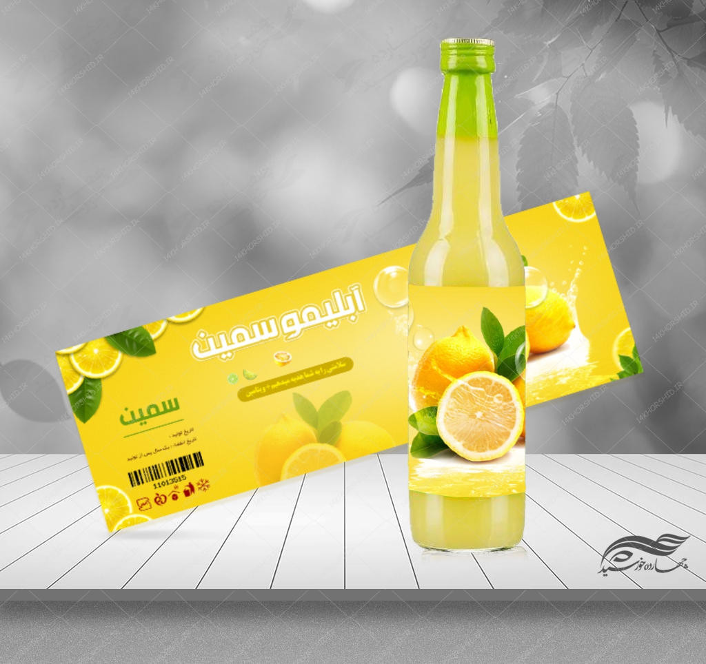 طرح لیبل و برچسب لایه باز شربت لیمو psd