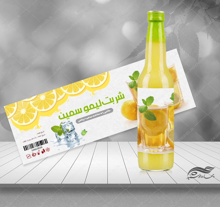طرح لیبل و برچسب لایه باز شربت لیمو psd