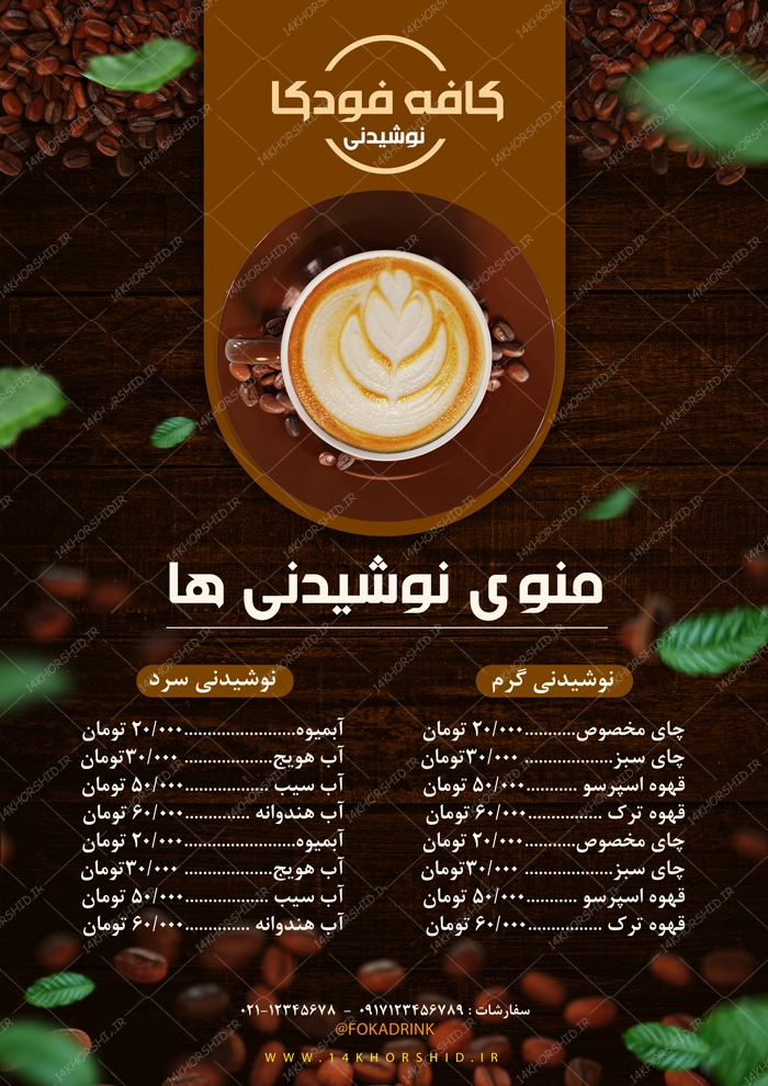 طرح منو لایه باز کافه و نوشیدنی لایه باز psd