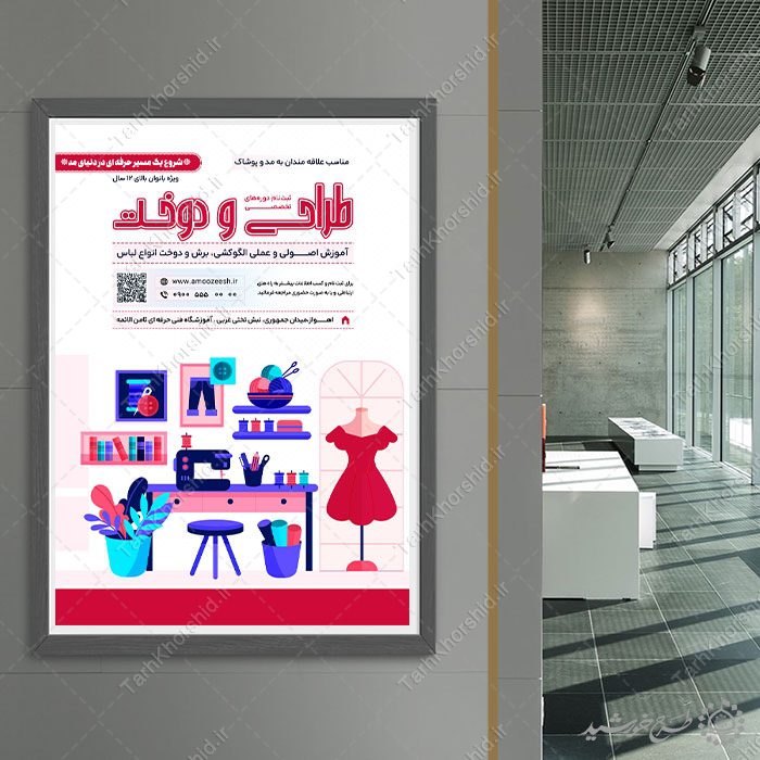 طرح پوستر دوره های آموزشی خیاطی لایه باز