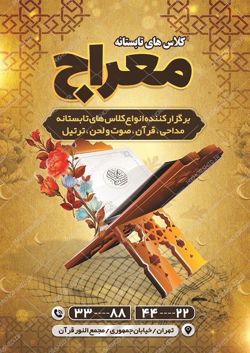 در این پست برای شما عزیزان طرح اوقات فراغت کلاس های قرآنی تابستانه psd قرار دادیم.طراحی این فایل بسیار با کیفیت می باشد وجهت چاپ روی انواع برگه A4/A3/A2 مناسب است.