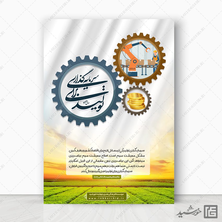 طرح پوستر لایه باز برای شعار سال سرمایه گذاری برای تولید