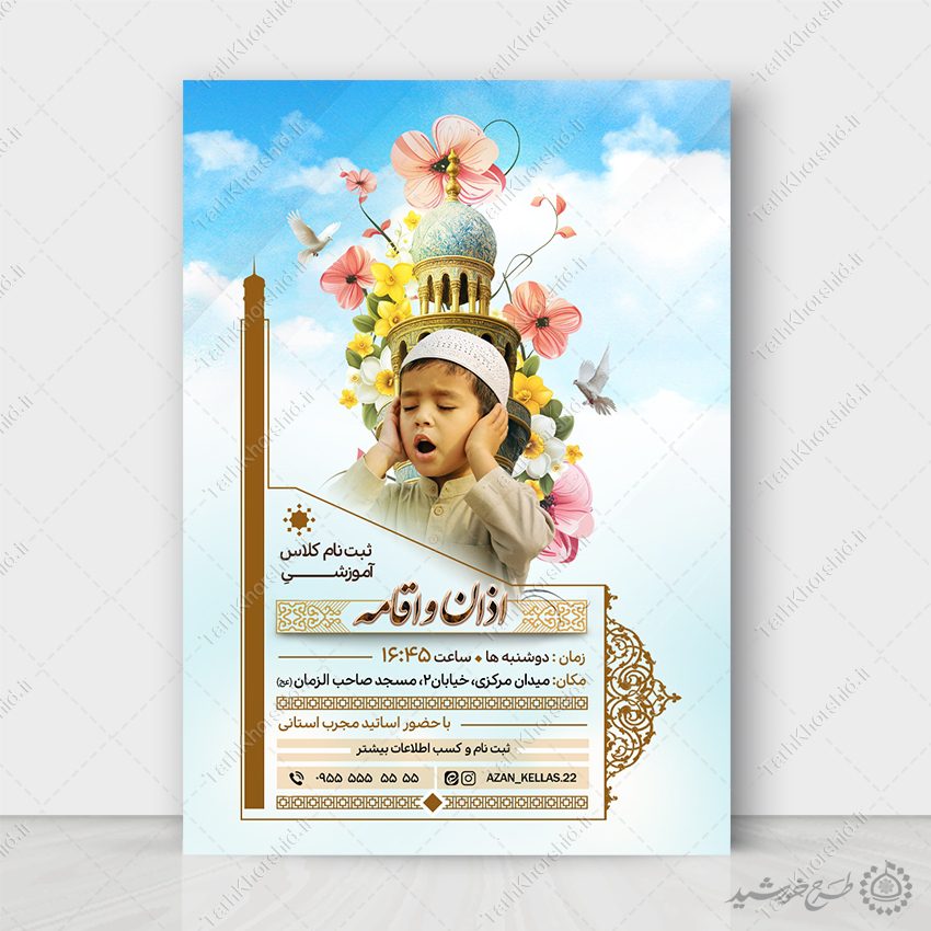 طرح پوستر لایه باز ثبت نام کلاس اذان و اقامه